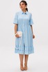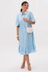 Функциональная застежка на пуговицах по всей длине делает платье не только красивым, но и практичным, а воланы по подолу добавляют движение и воздушность с каждым шагом.