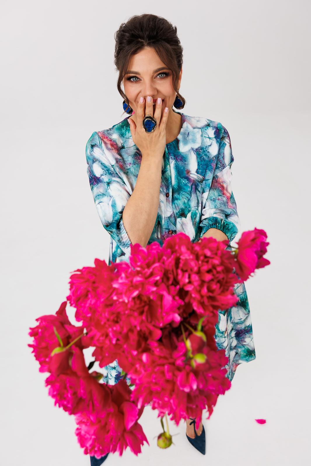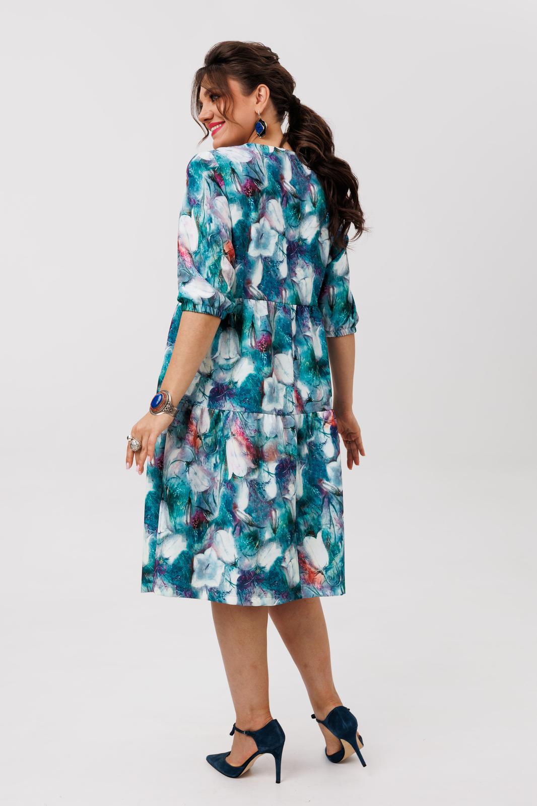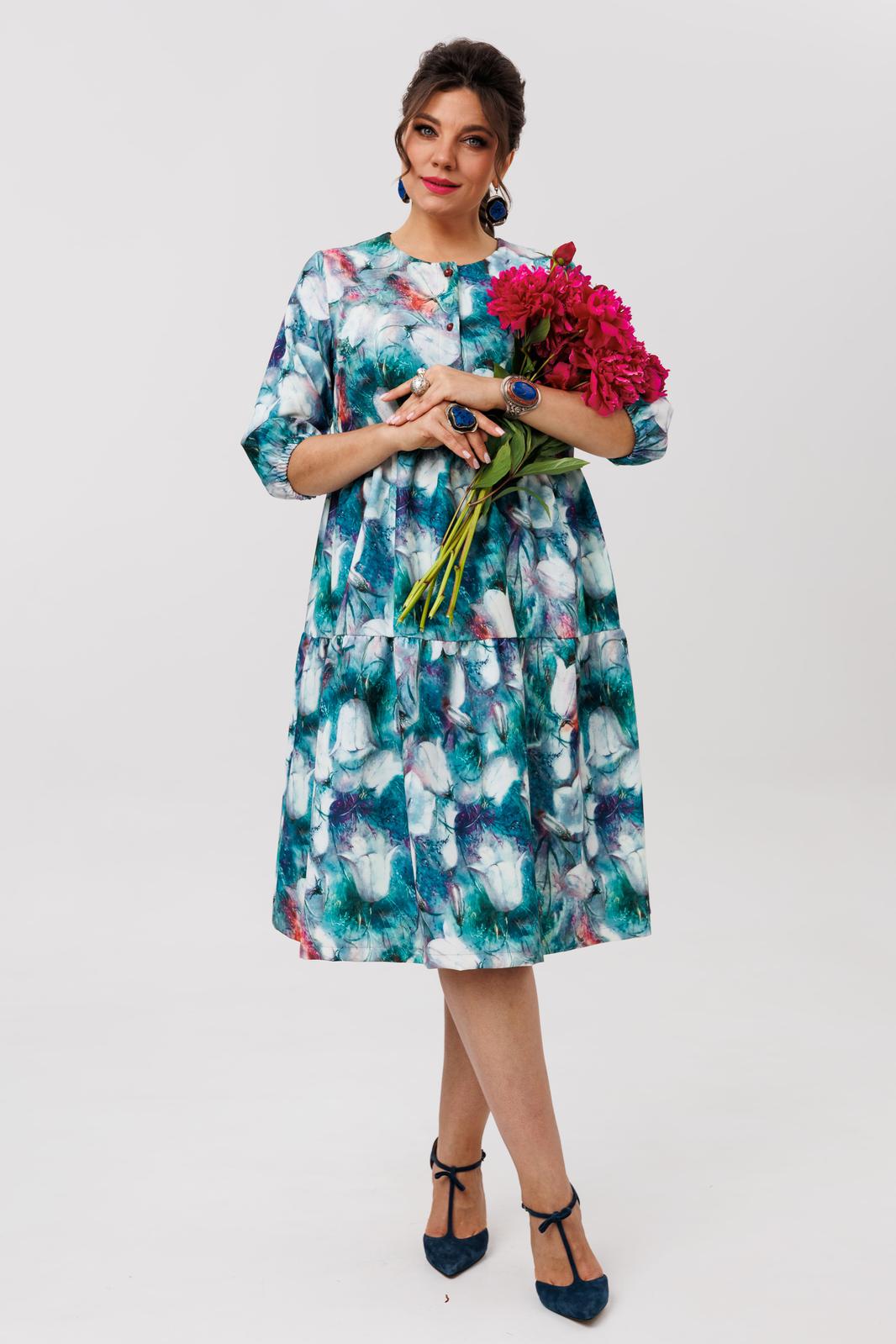 Мягкие каскады воланов, как лепестки цветка, струятся вдоль фигуры, мягко обволакивая и подчёркивая её изящество. Ткань не просто приятна коже - она идеально драпируется, создавая эффект струящегося силуэта, который движется вместе с вами. Отрезной лиф под грудью и свободный покрой дарят невероятную лёгкость и комфорт, позволяя чувствовать себя непринуждённо и собранно одновременно.