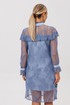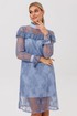 Это платье, сотканное из воздуха и тончайших нитей. Нежное кружевное полотно, подобно легкой дымке, обволакивает силуэт, заключая его в элегантные и строгие линии прямого кроя. Изысканность кроется в деталях: кокетки, украшающие лиф спереди и сзади, мягко ниспадают изящными волнами, подчеркивая линию плеч и даря образу трогательную, почти что хрупкую грацию.
