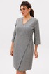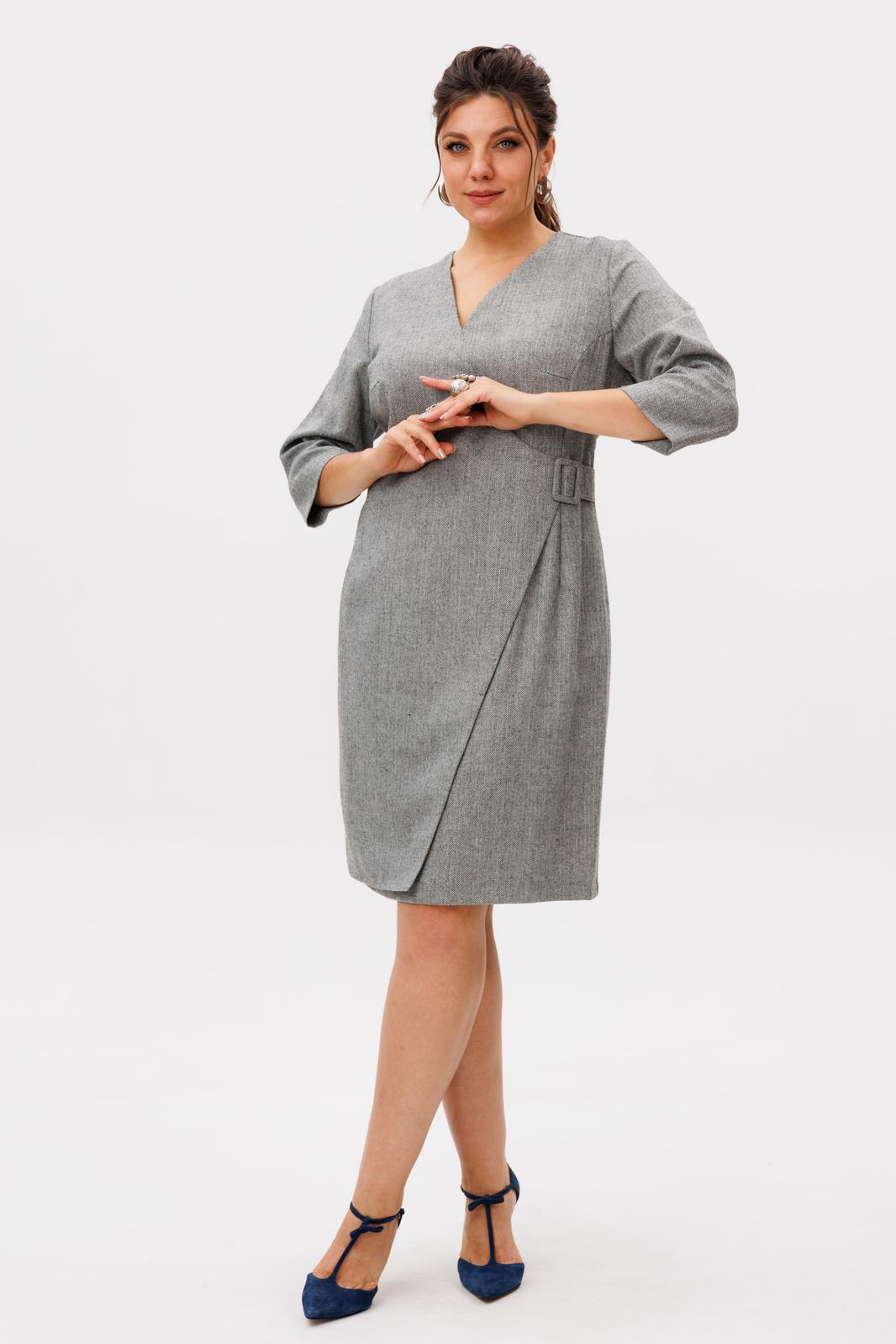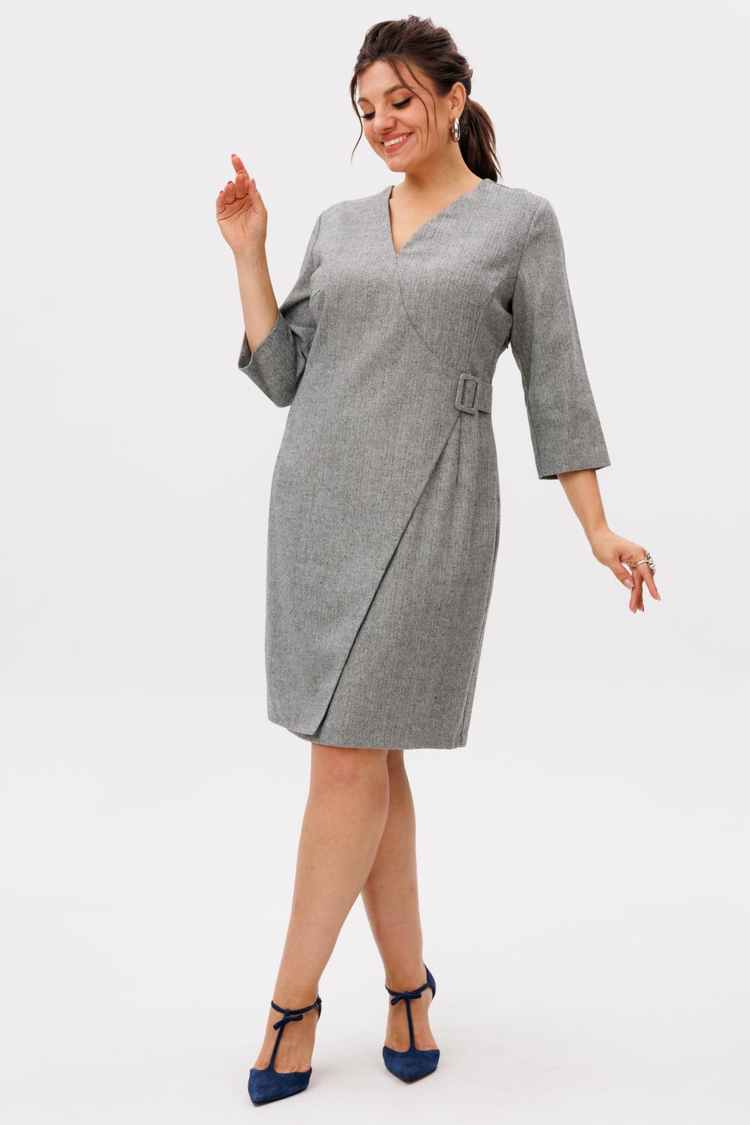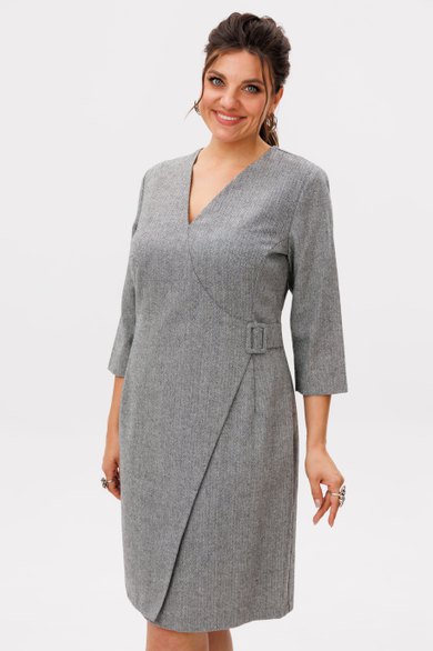Особую изюминку передней части платья придает отлетная деталь с эффектом запаха, декорированная изящной пряжкой, обтянутой основной тканью. Задняя часть с застежкой на потайную молнию обеспечивает идеальную посадку по фигуре.