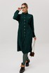 Спинка прилегает ,благодаря резинке по талии, выгодно подчеркивая достоинства, а накладные карманы создают целостность образа этого платья в стиле сафари. По центру застежка на кнопках, рукав цельнокроеный, длинный, на манжете.