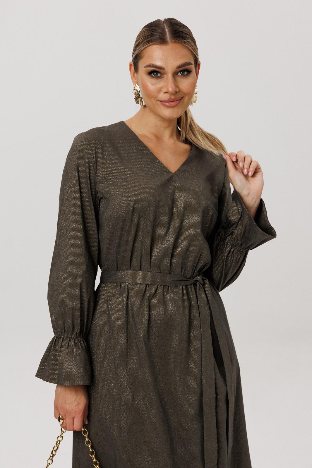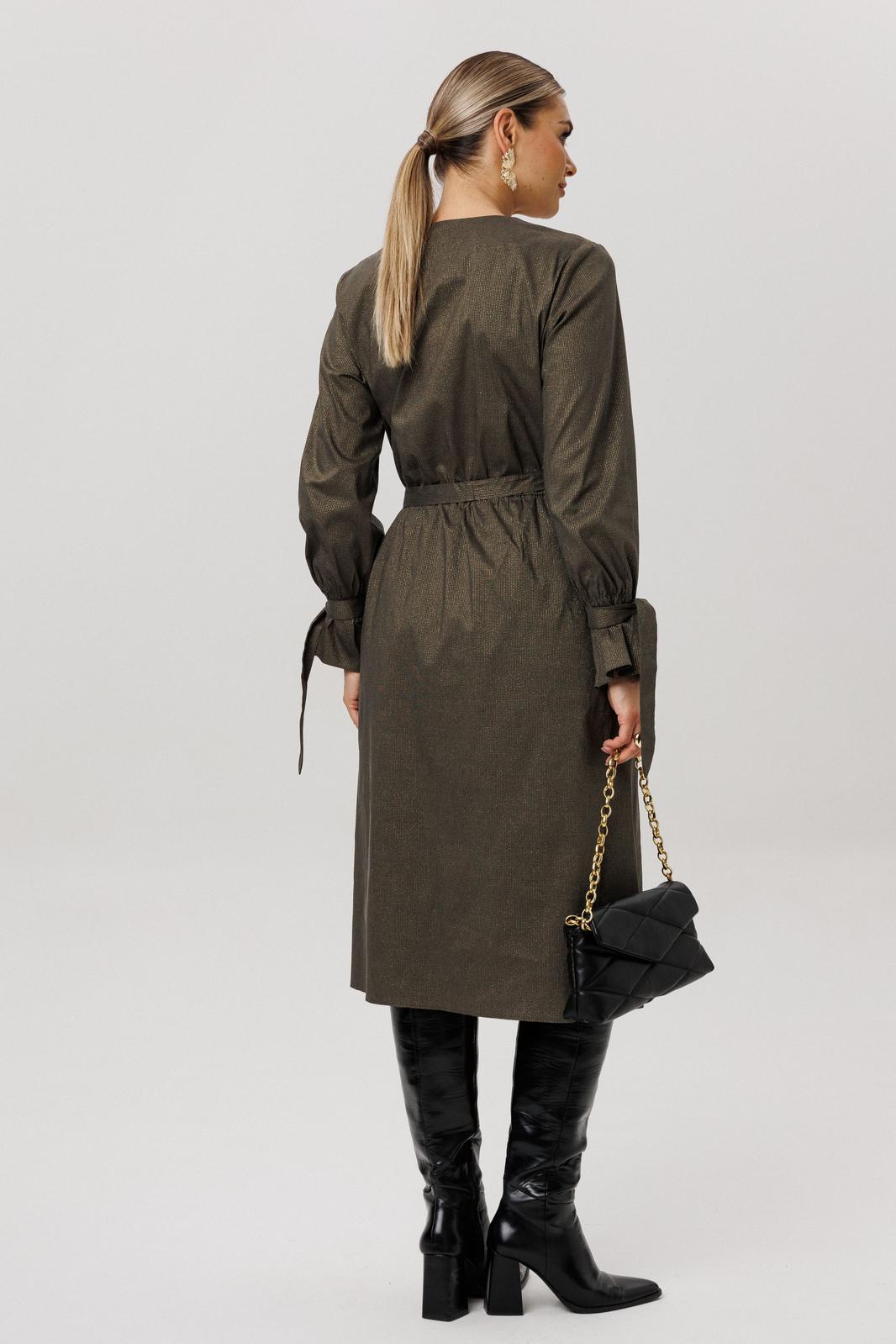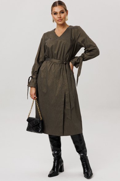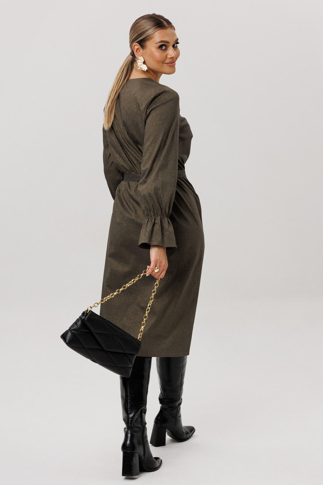 Платье полуприлегающего силуэта миди-длины от Анелли в актуальном темно-зеленом цвете с вкраплениями золотых нитей станет главным элементом вашего гардероба.