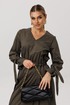 V-образный вырез элегантно подчёркивает линию шеи и ключиц, раскрывая вашу привлекательность.