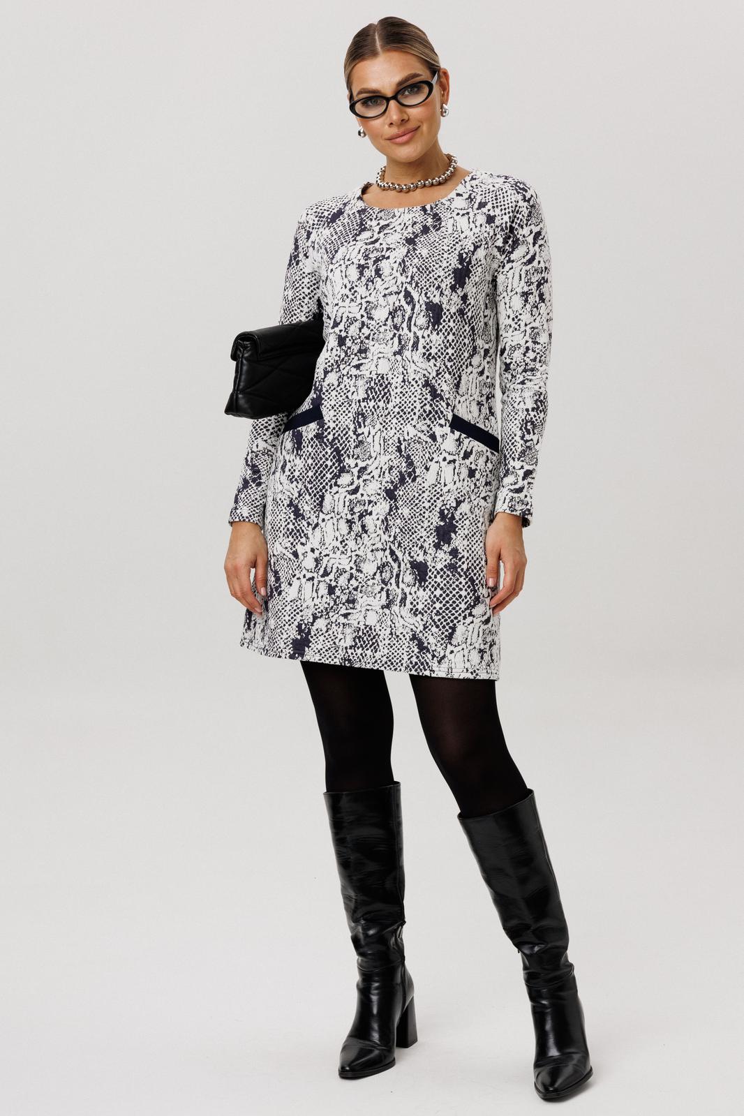 Плотный трикотаж в сочетании с приталенным силуэтом мягко подчеркивает достоинства фигуры. Круглый вырез элегантно обрамляет линию шеи и ключиц, а слегка расклешенная юбка создает лаконичный и женственный образ.