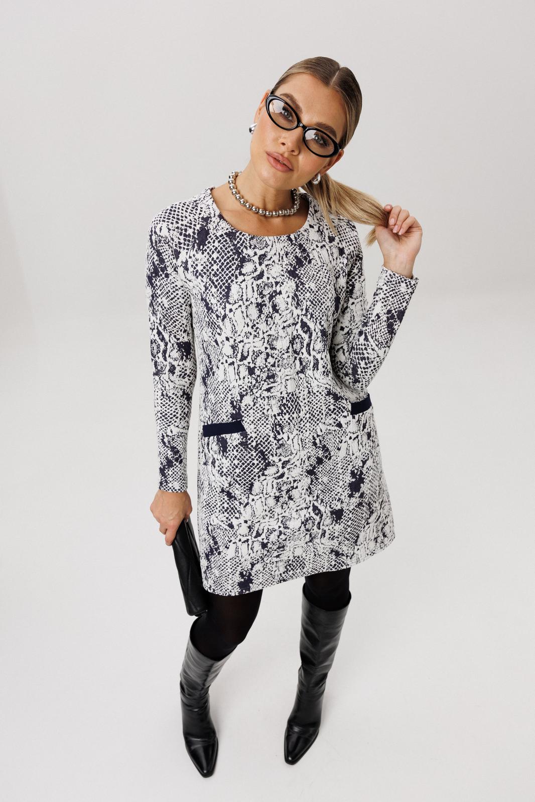 Рукав-реглан и два прорезных кармана дополняют платье удобством.
