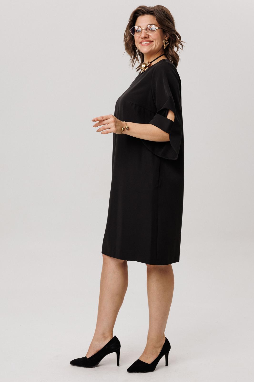 Платье от Анелли, воплотившее в себе торжественную элегантность, построено на безупречном крое и продуманных деталях. Его силуэт-трапеция, ниспадающий до длины, слегка прикрывающей колено, создает современный и уверенный образ.