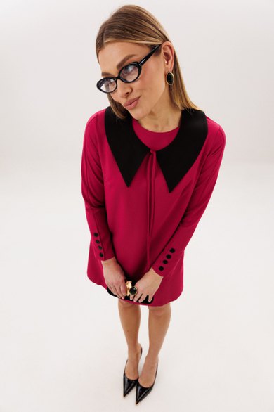 Это платье в цвете «каркаде» словно создано для игры настроений. Мягкая ткань дарит ощущение комфорта, а безупречный прямой крой остаётся элегантным в любой ситуации. Длинные рукава с изящными пуговками добавляют лёгкую динамику строгому силуэту.