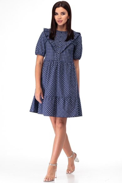Платье свободного силуэта трапеция, длиной выше колена, линия талии завышена