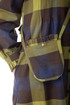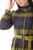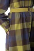 Образ дополняет сумочка на регулируемом ремне и съёмный пояс с пряжкой.