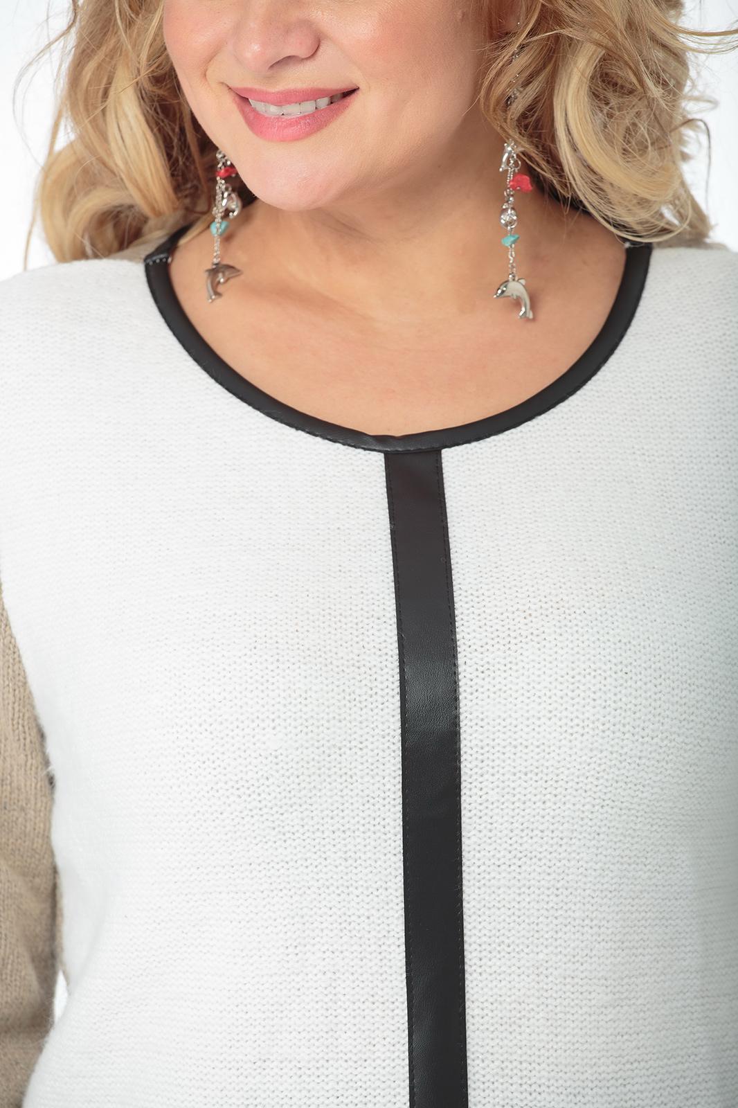 Элегантный вырез горловины с отделкой из экокожи. Втачные рукава.