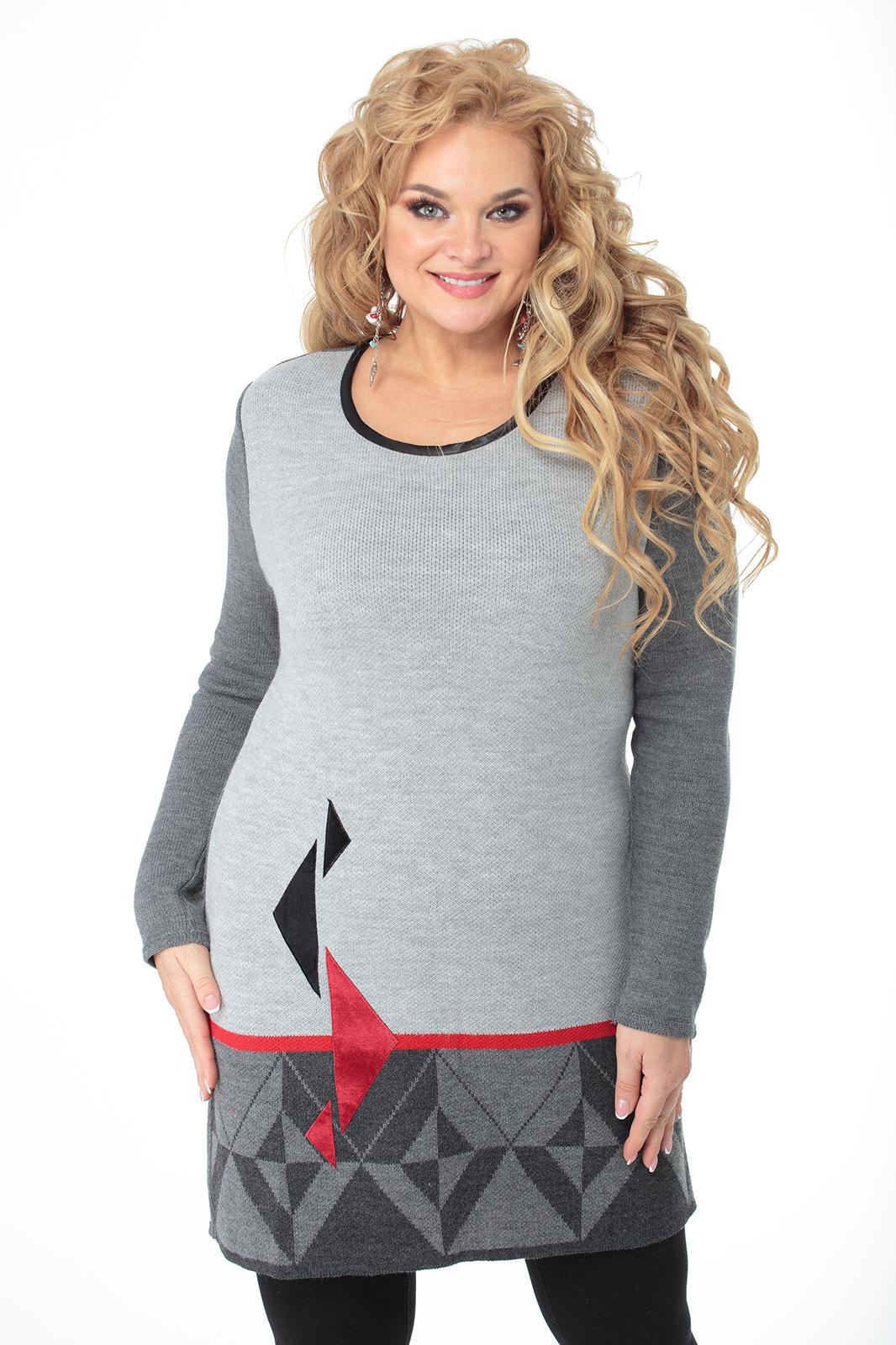 Предлагаем тунику из мягкой пряжи машинной вязки с рисунком по низу переда.