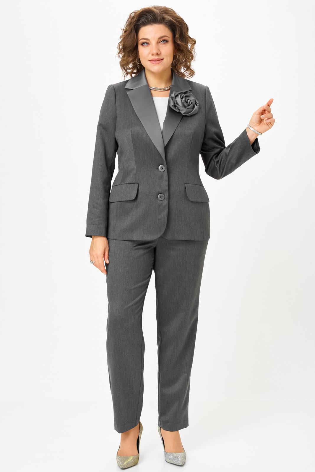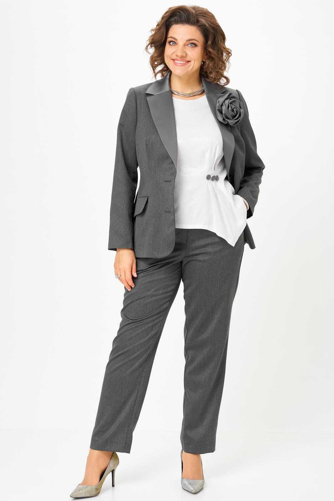 Классический комплект-тройка, состоящий из жакета, блузки и брюк, подчеркнет Вашу элегантность и женственность. Съемная брошь в виде цветка поможет в создании различных образов.