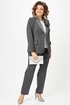 Однобортный жакет полуприталенного силуэта, на подкладке, с плечевыми накладками. Воротник пиджачного типа с отложными лацканами. По переду центральная застежка на петли и пуговицы и прорезные карманы с клапаном, талиевые вытачки и рельефы. Низ бортов закругленной формы. Спинка со средним швом и рельефами. Рукав втачной двухшовный длинный.