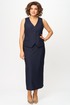 Прямая женская юбка с высокой посадкой длиной ниже колена, на подкладке. Верх на широком притачном поясе со вставками эластичной тесьмы. Застежка на молнию в среднем шве. На переднем полотнище вытачки, на заднем — вытачки и шлица в среднем шве.