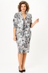 Юбка прямая, немного зауженная книзу, с высокой посадкой, длиной ниже колена, на подкладке. Верх на притачном поясе со вставками эластичной тесьмы по спинке. Застежка на молнию в среднем шве. На переднем полотнище вытачки, на заднем — вытачки и шлица в среднем шве.