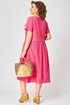 Платье свободного кроя с декоративным шитьем в нижней части юбки. Вырез округлой формы. Верх платья с завышенной талией: по переду - нагрудные вытачки и декоративное украшение, по спинке - центральный шов с застежкой на молнию. Низ платья — свободная летящая юбка со сборкой из-под верхней части платья, которая обеспечит комфорт и свободу движений. В боковых швах юбки функциональные карманы. Рукав втачной короткий, понизу - притачная манжета.