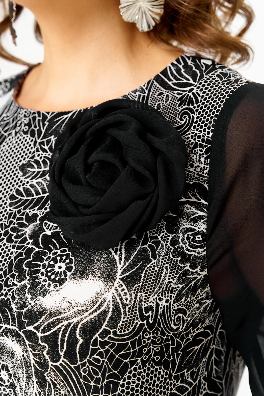 Вечернее платье с прозрачными рукавами станет идеальным выбором для торжества или особого мероприятия. Платье выполнено из эластичного трикотажа масла. Свободное облегание и длина чуть ниже колена подчеркнут вашу элегантность и женственность, а широкие рукава из шифона добавят образу легкость и изящество.