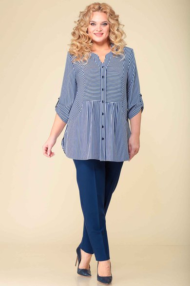 Цвет: блузка - синий, белый; брюки - тёмно-синий