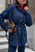 Рубашка из плотной джинсовой ткани, удлинённая. Линия плеча спущена, рукав одношовный, обработан манжетой из основной ткани. Воротник рубашечного типа. По талии обработана кулиса и шнурок из основной ткани. Застёгивается на пуговицы.