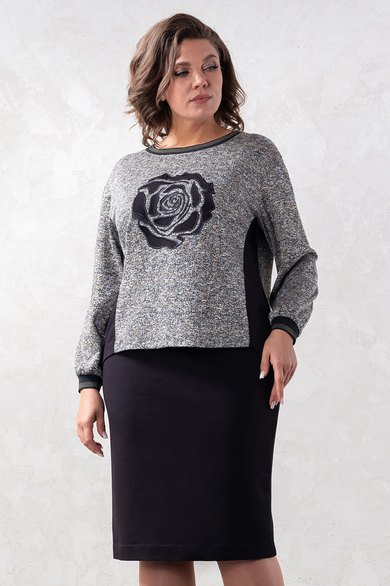 Трикотажный комплект двойка: свитшот+юбка. Юбка прямая, немного зауженная к низу. Талия на широкой удобной резинке. В среднем шве сзади разрез. Трикотаж мягкий, приятный на ощупь, эластичный. Свитшот трикотажный, свободный. Рукав втачной на спущенной пройме. Низ рукава обработан трикотажным довязом. Длина по переду чуть короче чем по спинке по модели. На переде машинная вышивка.