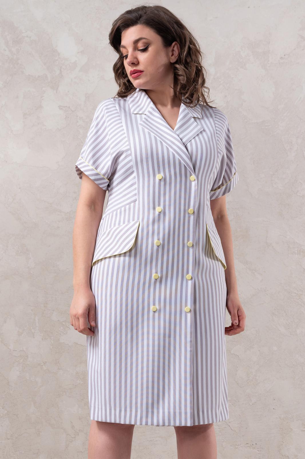 Элегантное платье полуприлегающего силуэта из костюмно-плательной ткани средней плотности, немного тянется. Застежка спереди на кнопки. На переде имитация карманов. Рукав цельнокроеный. Длина по спинке в 48-50-52 размерах 100 см, в 54-56-58 размерах 103 см. Длина по спинке в 48-50-52 размерах 101 см, в 54-56-58 размерах 103 см.