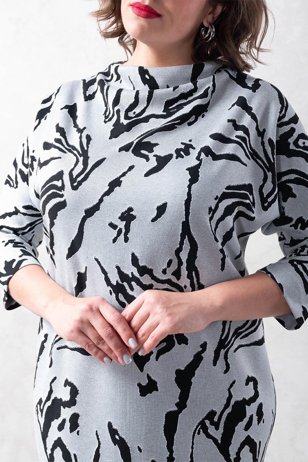 Удобное трикотажное платье полуприлегающего силуэта для повседневной носки. Трикотаж средней плотности, хорошо тянется. Рукав цельнокроенный, длина 3/4.