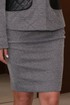 Трикотажная юбка-карандаш. Застежка на потайную молнию сзади. Пояс на кокетке из эко-кожи. На переде имитация карманов. В среднем шве спинки разрез. Длина изделия 59 см.