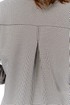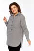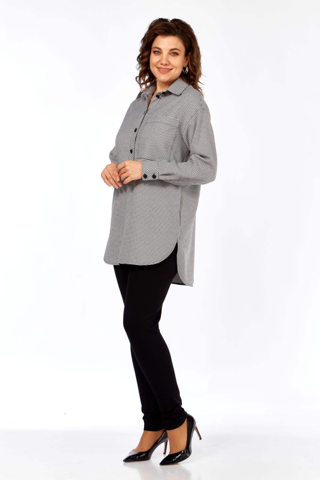 Рубашка свободного кроя, в стиле оверсайз. Силуэт свободный. На переде слевой стороны карман, выкроенный по косой. В боковых швах карманы. Рукав рубашечный с разрезом и складками,заканчивается манжетой, которая застегивается на 2 петли и пуговицы.Плечо спущенное, кокетка также выкроена по косой. На спинке по центру складка. Спинка длиннее переда, низ спинки и переда скруглен к боковым. Планка переда выполнена не до конца детали. Длина по спинке-84,5см, длина рукава+манжета-53,5см, длина плеча-20см. Параметры модели: обхват груди-98см, обхват бедер-110см, размер изделия на модели 50.