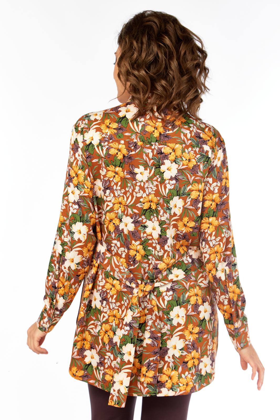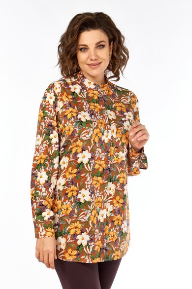 Рубашка свободного кроя, в стиле оверсайз. Силуэт свободный. На переде настрочен 1 кармана с левой стороны. По боковым швам разрезы. Рукав длинный, заканчивается манжетой, на рукаве удлиненный разрез. Манжета застегивается на 2 петли и пуговицы. Плечо спущенное. в боковые вставлен пояс. Длина по спинке от плеча-84см, длина по центру спинки - 82смдлина рукава+манжет- 60см. Параметры модели: обхват груди-98см, обхват бедер-110см, размер топа на модели 50.