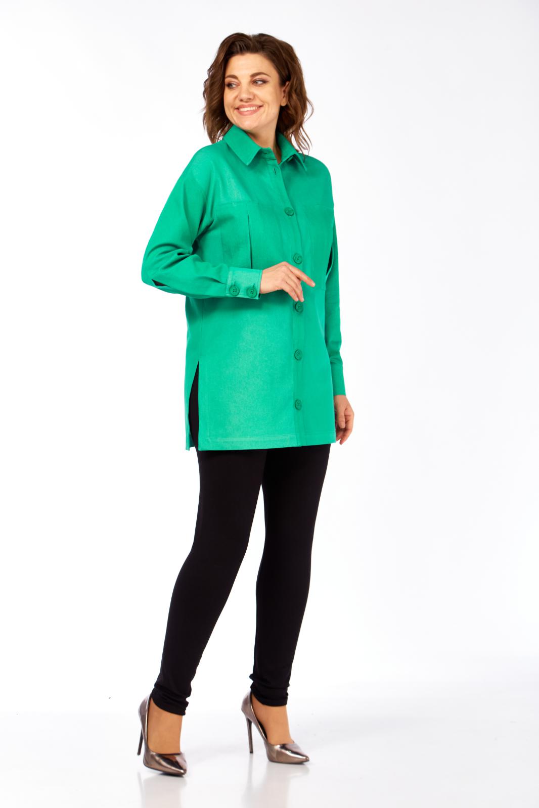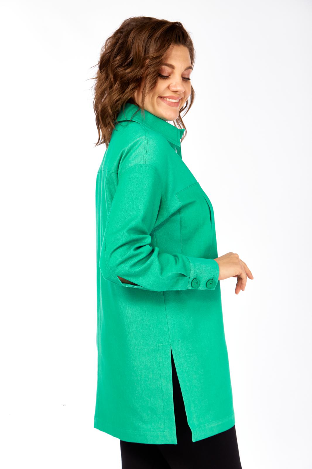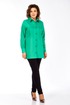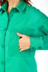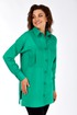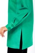 Рубашка свободного кроя, в стиле оверсайз. Силуэт свободный. На переде настрочены 2 фантазийных кармана. По боковым швам разрезы, отстроченные широкой отделочной строчкой. Рукав длинный двухшовный с длинным разрезом также отстроченным широкой отделкой. Плечо спущенное. Длина по спинке-80,5см, длина рукава+манжет-54см, длина плеча-20 длина разреза-23,5см. Параметры модели: обхват груди-98см, обхват бедер-110см, размер топа на модели 50.