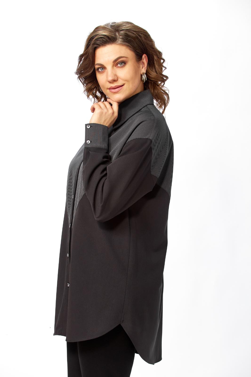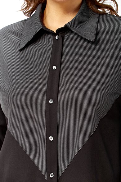 Рубашка свободного кроя.Низ переда и спинки закругленные, спинка чуть длиннее переда. Рубашка застегивается на петли-пуговицы. На переде и спинке большие кокетки из ткани в полоску. По всем швам выполнены отделочные строчки. Рукав рубашечный с удлиненным разрезом и складками,заканчивается манжетой из ткани клетка, которая застегивается на 2 петли-пуговицы. Длина по спинке(от точки основания шеи) -86,5см, длина рукава+манжета-56см, длина плеча-20см. Подойдет для носки вторым слоем(на топ, майку, лонгслив). Параметры модели: обхват груди-98см, обхват бедер-110см, размер изделия на модели 50.
