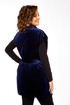 Жилетка свободного силуэта, прямого кроя, удлиненная, с декоративной стежкой ромб. Воротник стойка из кошкорсе. Центральная застежка молния. На переде прорезные карманы с листочками. Низ прямой. Спущенная линия плеча. В комплекте пояс. В боковые швы в районе талии вставлены шлевки для пояса, пояс можно убрать, что не повлияет на внешний вид жилетки. Длина плеча-20,5см, длина по спинке-85см. Параметры модели: обхват груди-98см, обхват бедер-110см, размер изделия на модели 50.