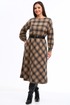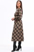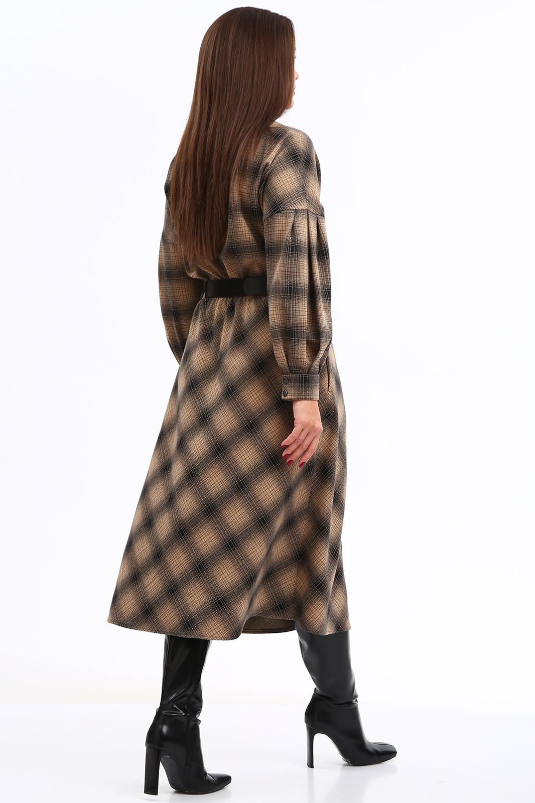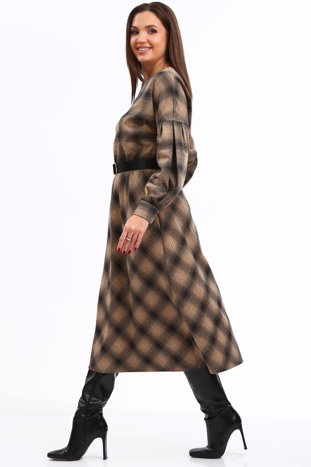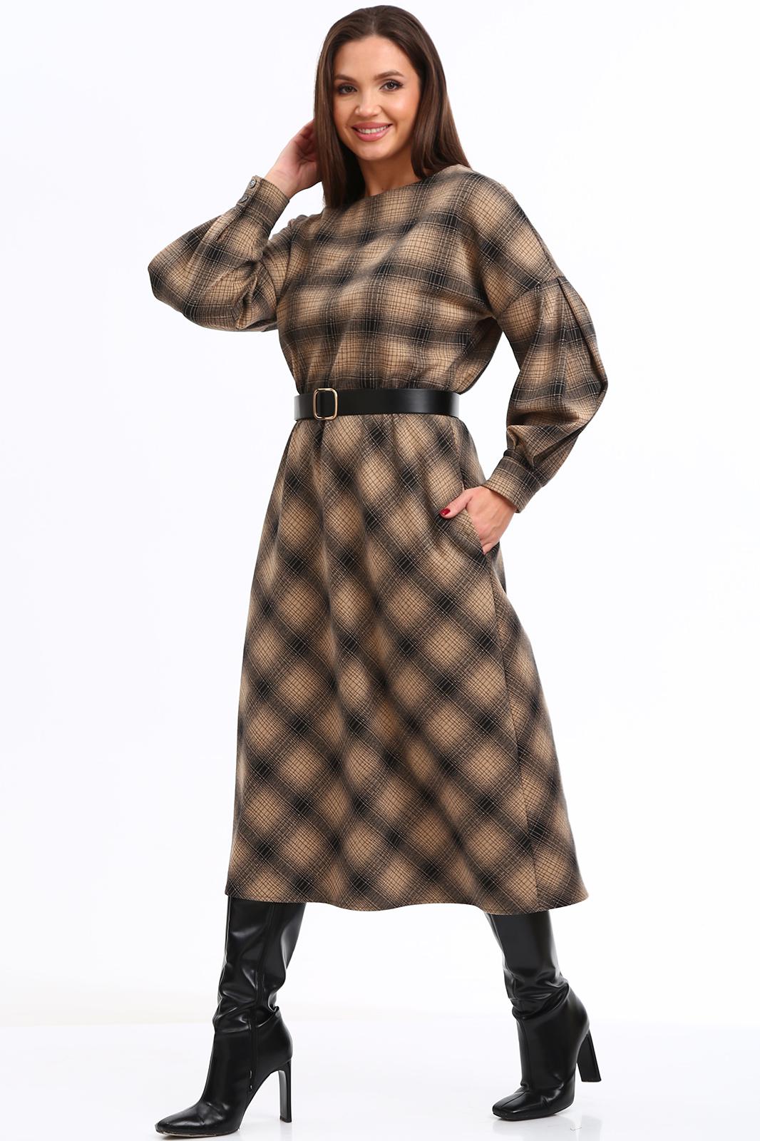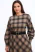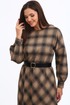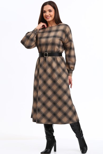 Уютное трикотажное платье в клетку с 3D эффектом в трендовой расцветке, безусловно, станет фаворитом в Вашем гардеробе. Изделие выполнено из высококачественного турецкого, приятного к телу вискозного трикотажа. Платье А-образного силуэта, отрезное по линии талии. Рукава спущенные с активными защипами, полной длины, с притачными манжетами с застежкой на петли-пуговицы. Горловина мягкой округлой формы. Нижняя часть платья покроя трапеция. В боковых швах предусмотрены функциональные карманы. В области талии платье присобрано на эластичную тесьму. Платье дополнено стильным съёмным ремнем.