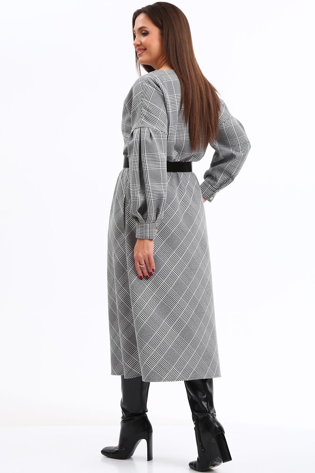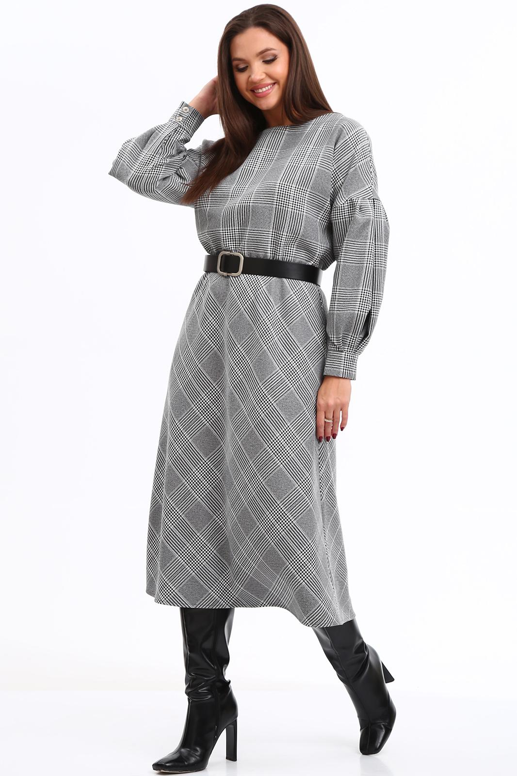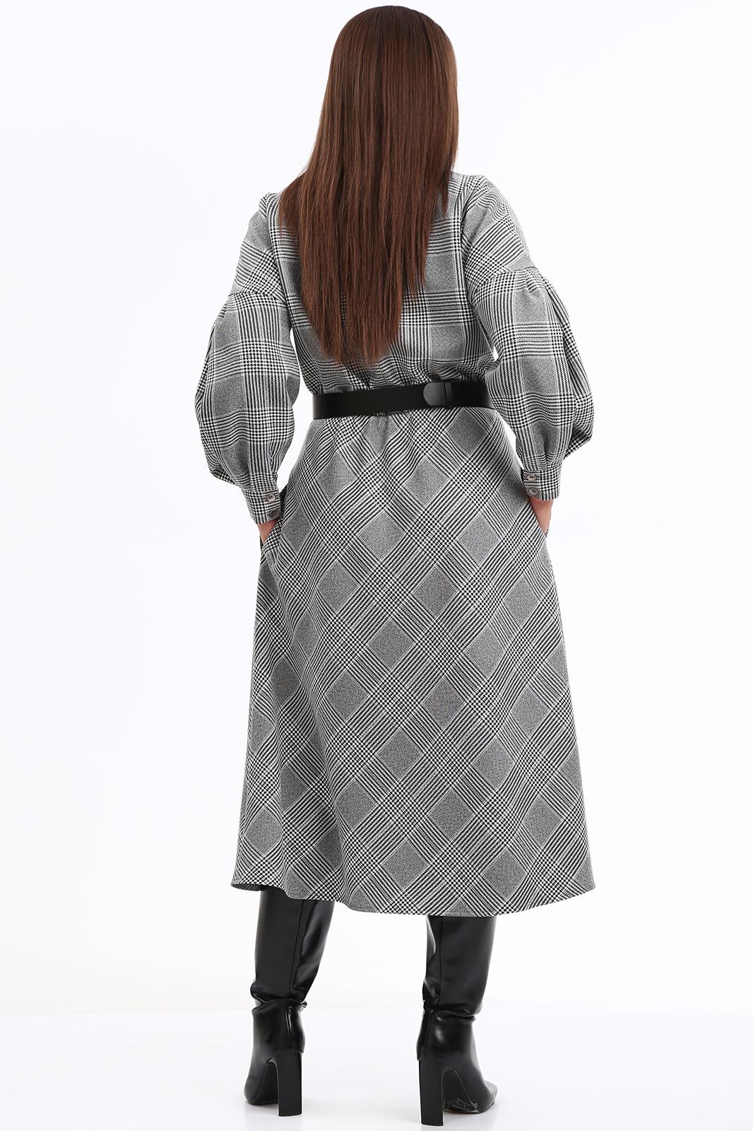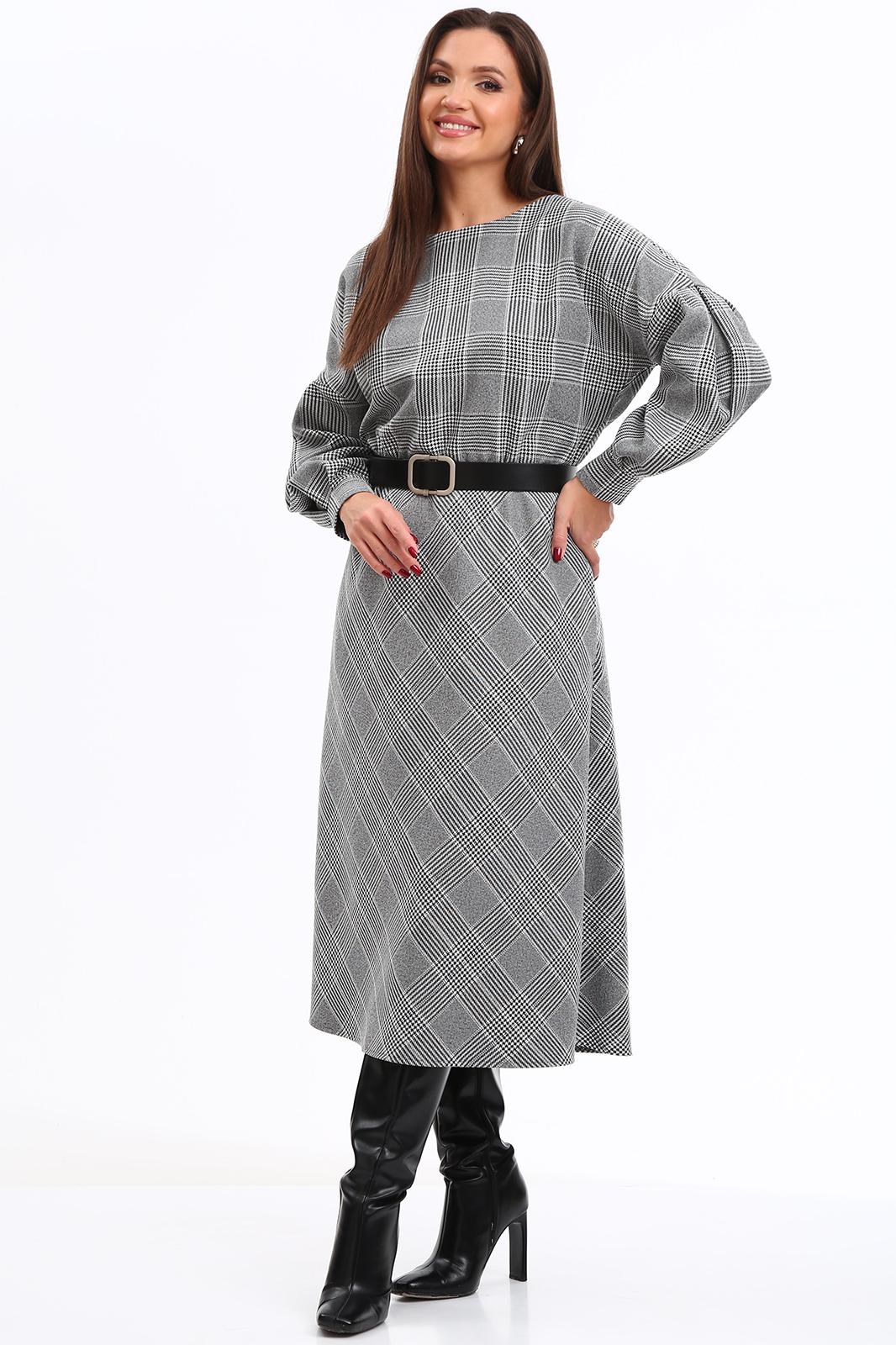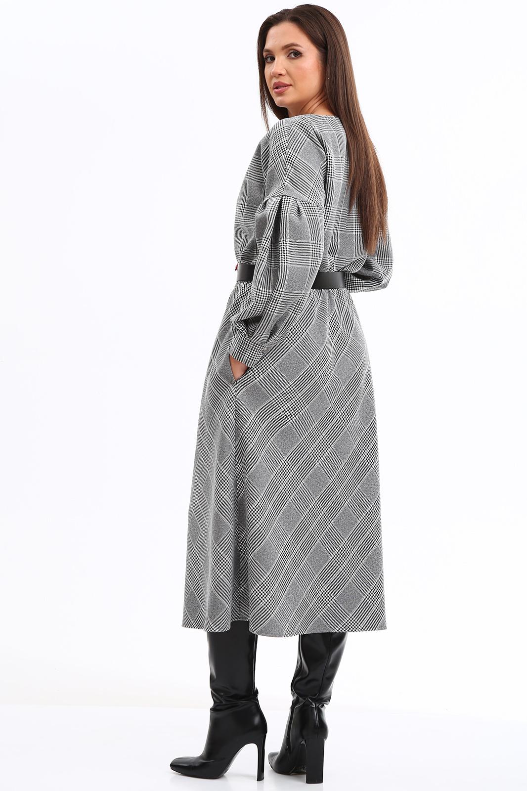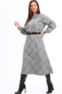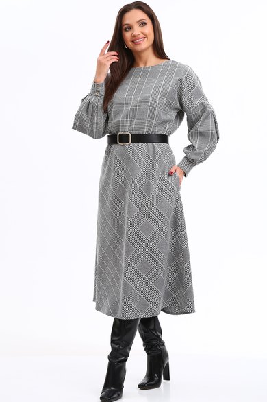 Стильное платье в клетку в трендовой расцветке, безусловно, станет фаворитом в Вашем гардеробе. Изделие выполнено из высококачественной ткани, приятной к телу. Платье А-образного силуэта, отрезное по линии талии. Рукава спущенные с активными защипами, полной длины, с притачными манжетами с застежкой на петли-пуговицы. Горловина мягкой округлой формы. Нижняя часть платья покроя трапеция. В боковых швах предусмотрены функциональные карманы. В области талии платье присобрано на эластичную тесьму. Платье дополнено стильным съёмным ремнем.