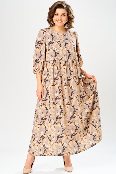 Платье со слегка завышенной линией талии. Лиф платья выполнен с застежкой на петли-пуговицы. Рукав втачной одношовный, со сборкой по линии оката, низ рукава оформлен манжетой.