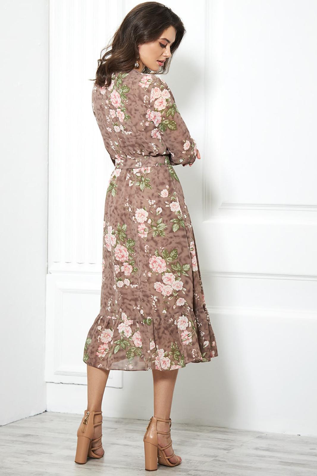 Струящейся шифон делает платье легким и удобным, помогая ему заслуженно стать одним из любимых вещей гардероба. Рюша по лифу и низу платья, а также подчеркнутая поясом линия талии придает романтический, нежный образ женщине.