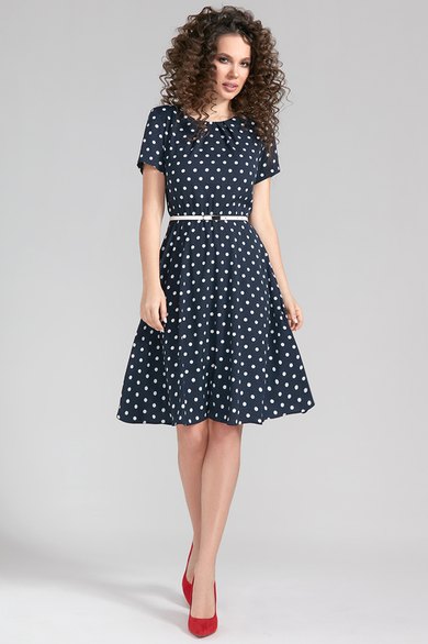 -платье отрезное по линии талии, полуприлегающего силуэта с юбкой-клёш, по линии талии присборено на резинку, юбка платья на подкладке
