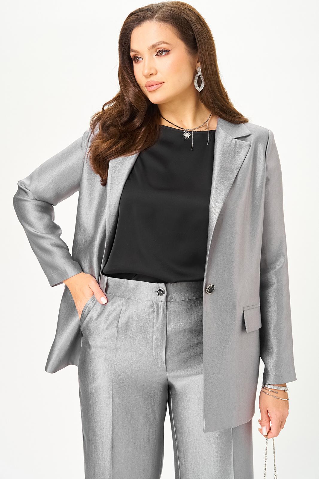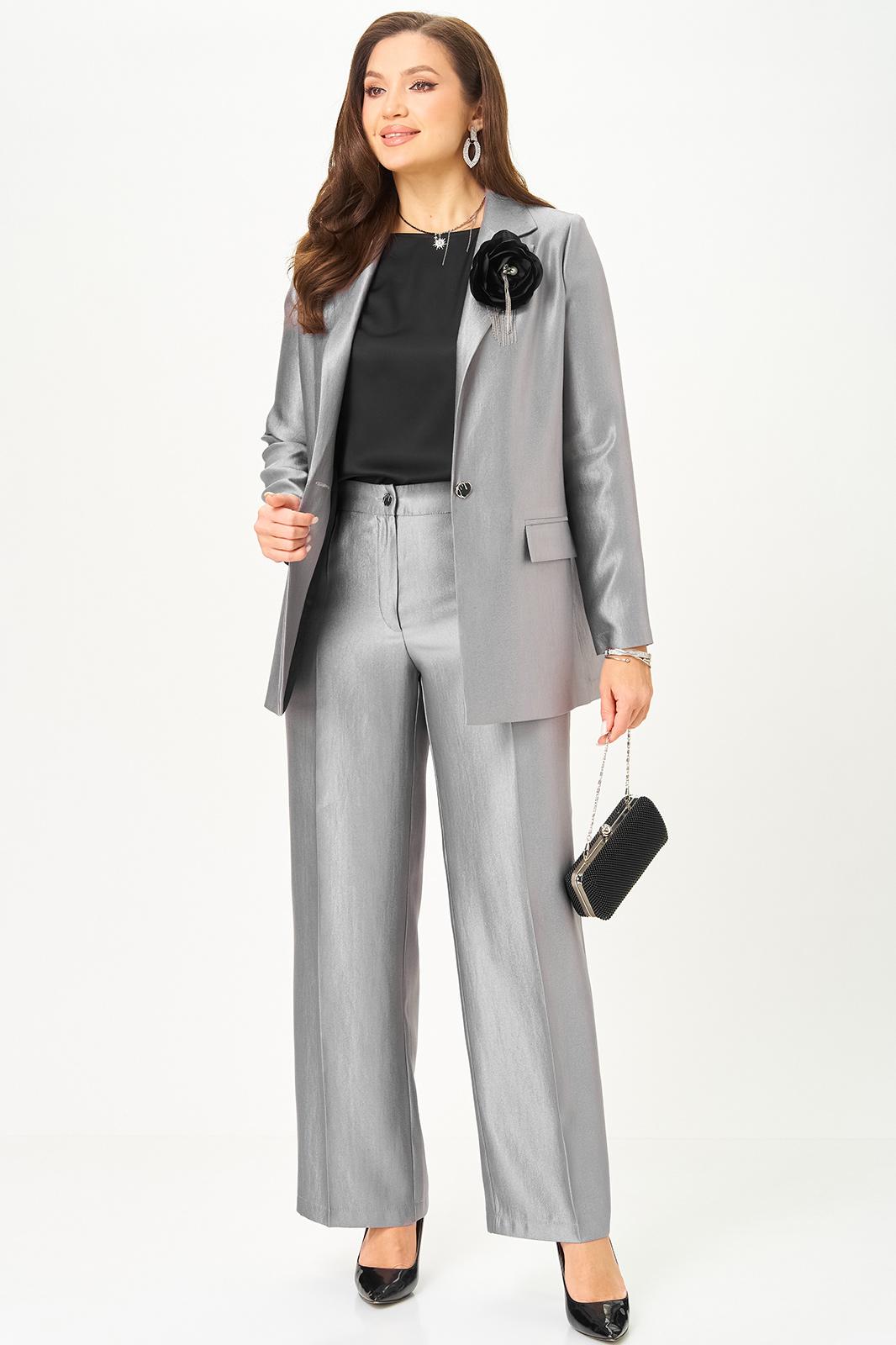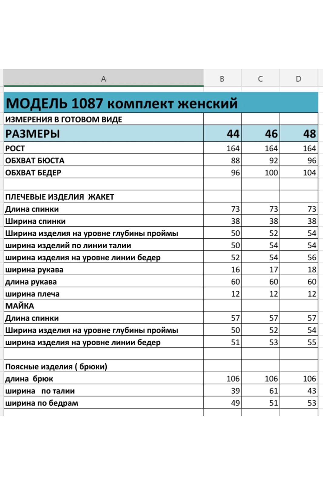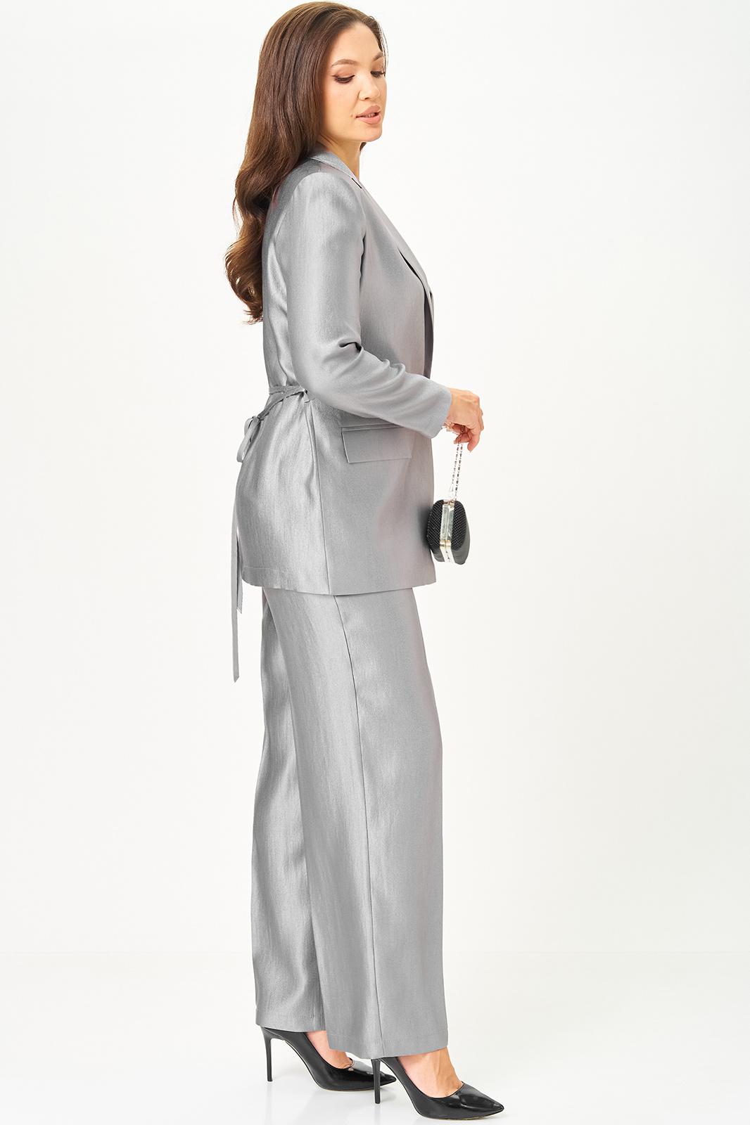 Женский трёхпредметный комплект состоит из жакета и брюк , выполненных из плательно-костюмной ткани Люмина и блузы,выполненной из блузочной ткани шёлк Армани.