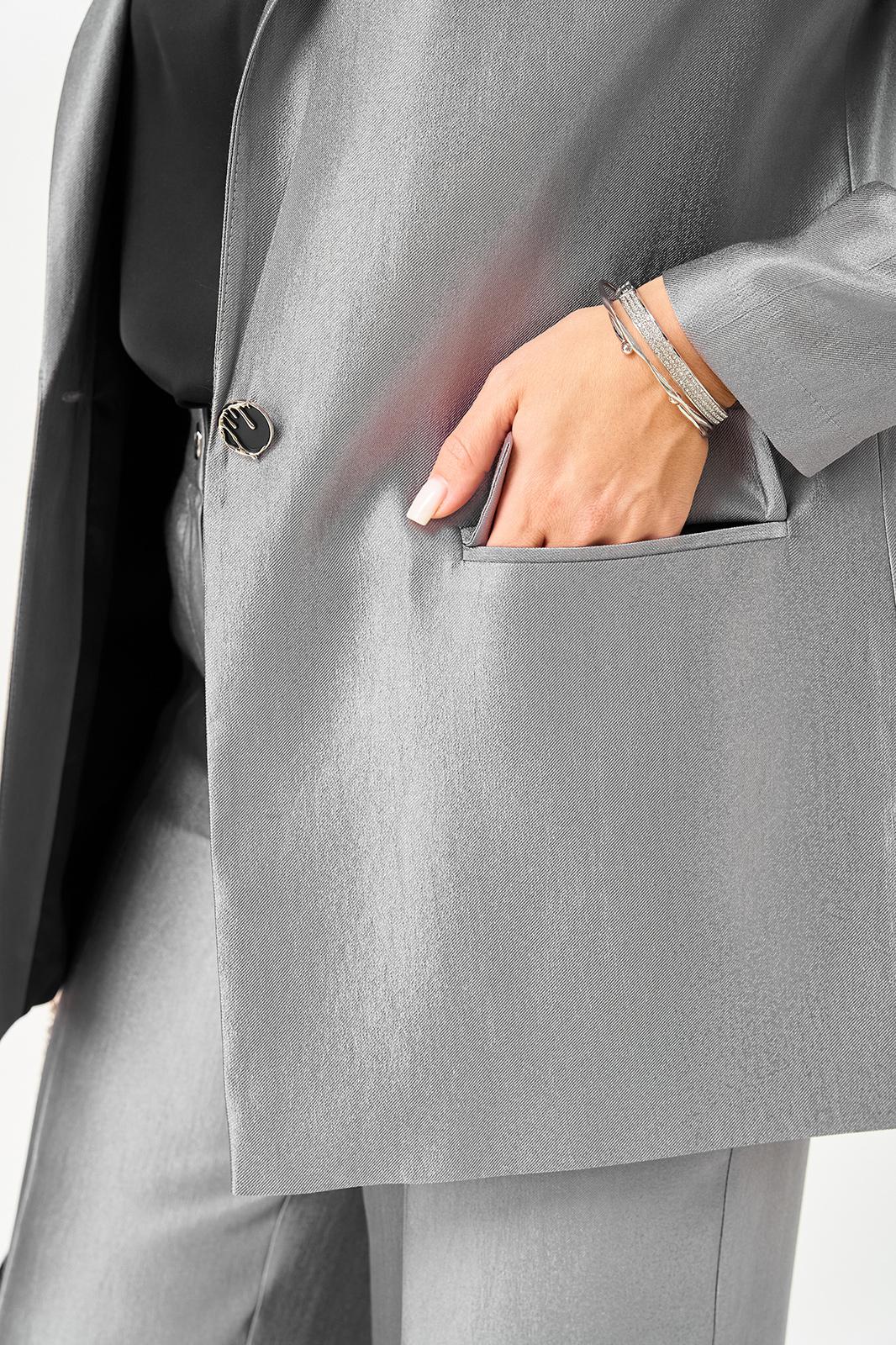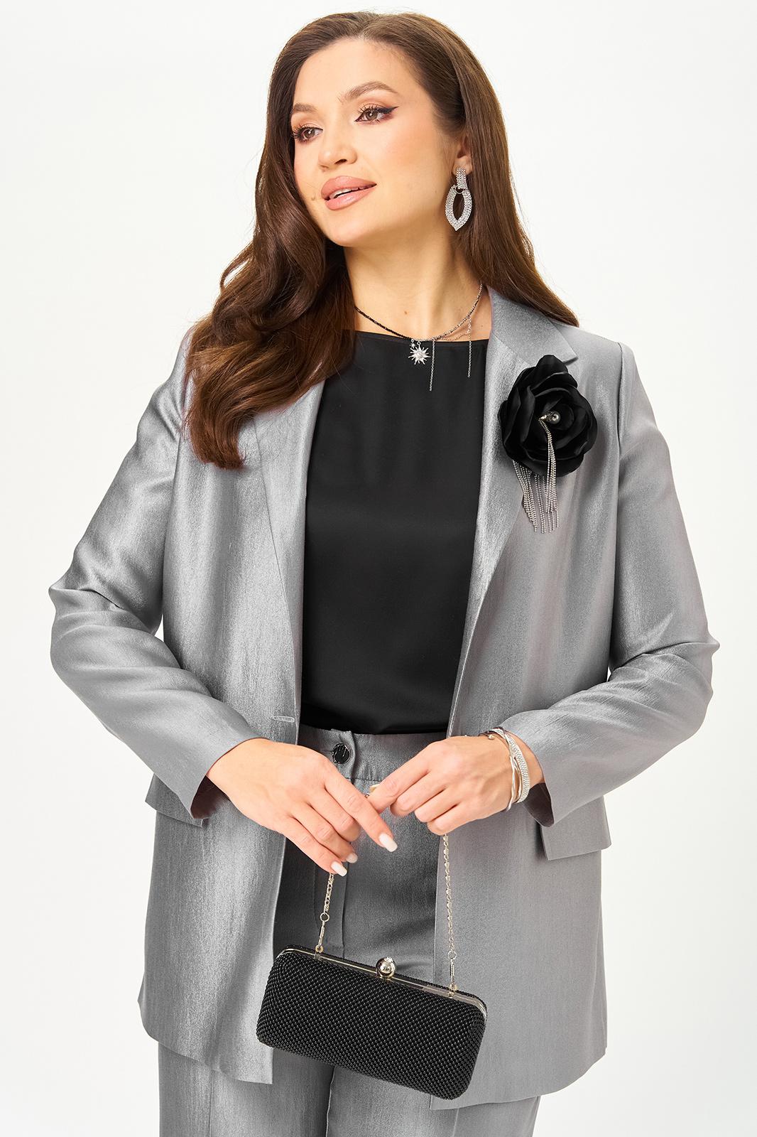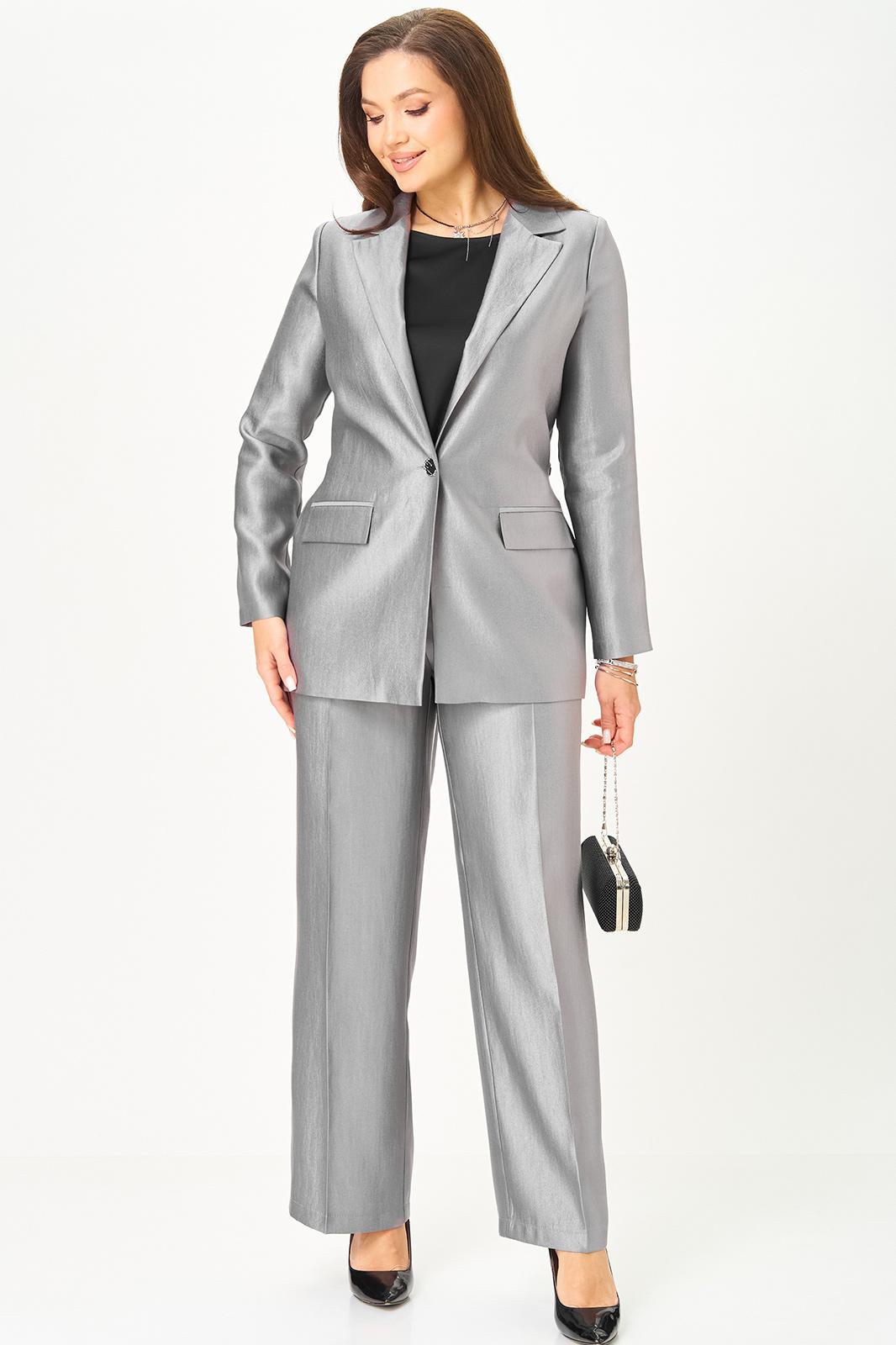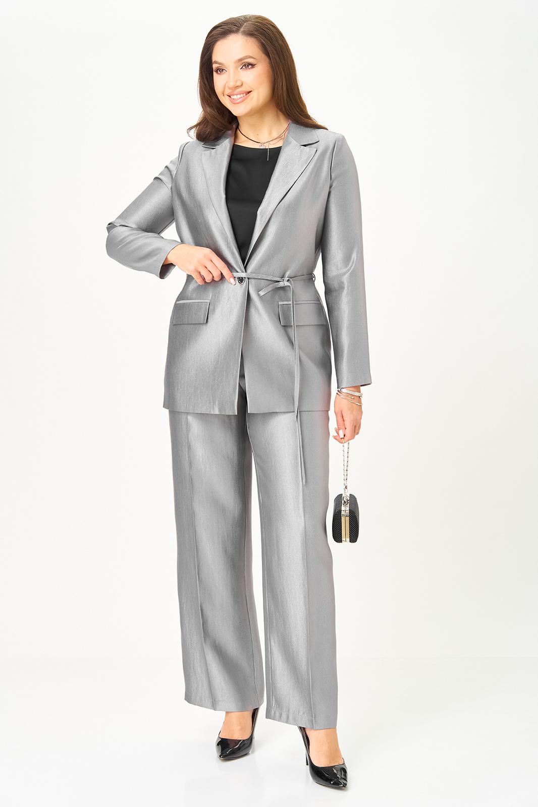 Женский трёхпредметный комплект состоит из жакета и брюк , выполненных из плательно-костюмной ткани Люмина и блузы,выполненной из блузочной ткани шёлк Армани.