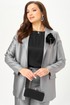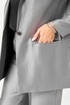 Жакет прямого силуэта,с центральной застёжкой на 1 петлю и пуговицу и воротником пиджачного типа с отложными лацканами.Перед с карманами с листочками и клапанами .Спинка со средним швом.Рукава втачные, с локтевой вытачкой одношовные,длинные .Перед жакета на подкладке.В боковых швах шлевки. Жакет укомплектован узким поясом-завязкой из основной ткани.