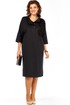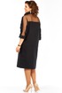 Нарядное женское платье выполнено из плательно-костюмной ткани Шуршун. Платье прямого силуэта , оверсайз, с цельнокроеным рукавом длиной 3/4, заканчивающимся притачной отложной манжетой, выполнено из двух видов ткани. Перед с втачными планками по горловине и центральной застёжкой на 2 кнопки, и декоративным элементом из сетки. Воротник - стойка. Спинка с отрезной кокеткой из сетки и средним швом. В боковых швах разрезы.