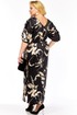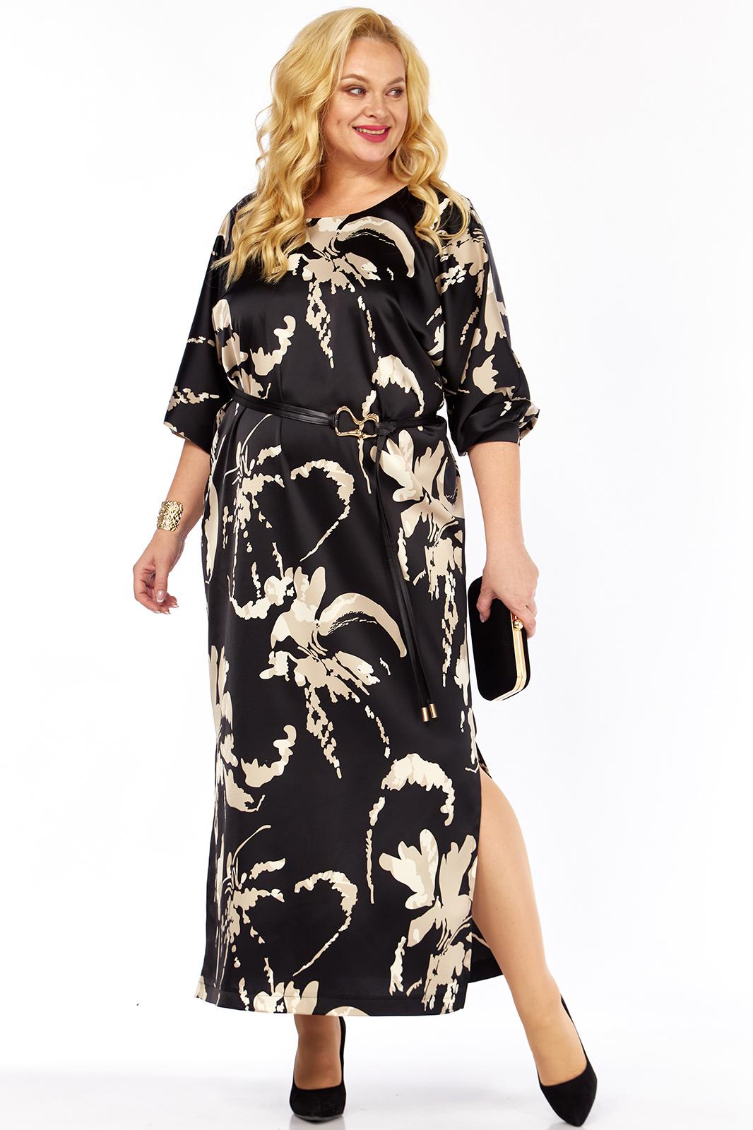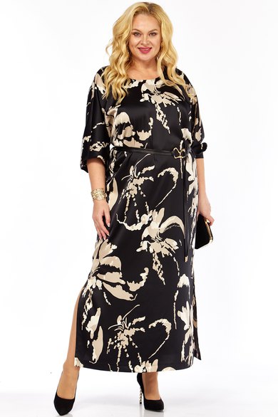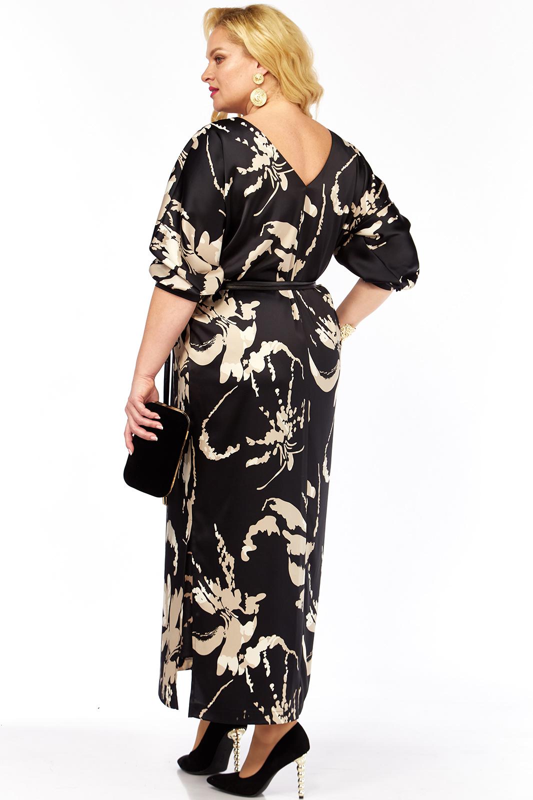 Женское нарядное платье,выполнено из плательно-блузочной атласной ткани с оригинальным дизайном. Платье прямого силуэта, длиной макси с интригующими разрезами по бокам. Рукава цельнокроеные, длиной 3/4 со сборкой по низу и притачных манжетах с застёжкой на петлю и пуговицу. Спинка со средним швом. Вырез горловины переда округлый,по спинке V-образный,обработан обтачкой.