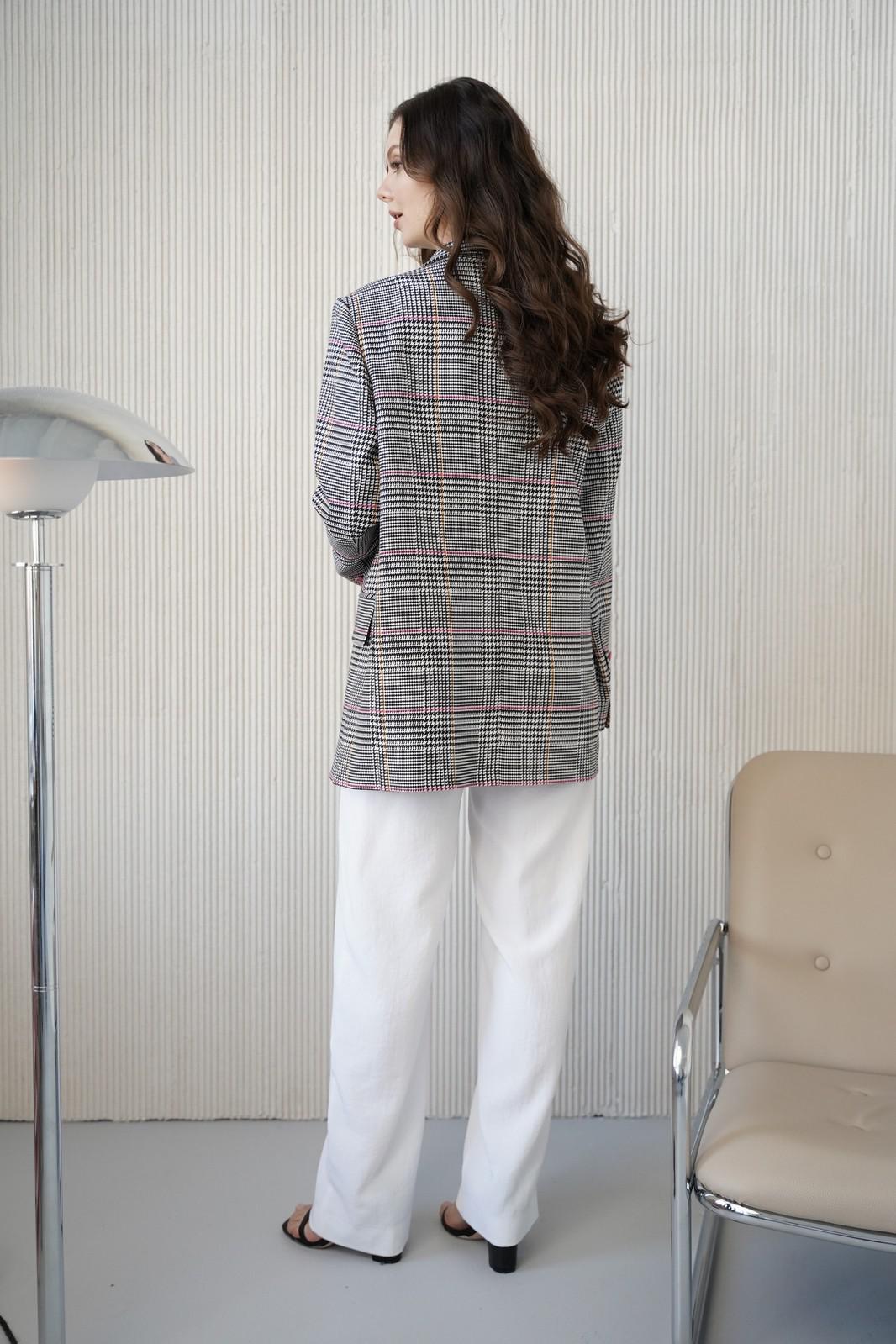 Брюки из ткани лен-вишер. Брюки прямого кроя, со средней посадкой. Пояс притачной, с застежкой на петлю и пуговицу. По переду боковые карманы с отрезным бочком.