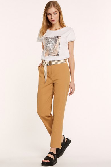 - блузка свободного кроя с цельнокроенными рукавами с округлой формой горловины, обработанной трикотажной декоративной тесьмой;