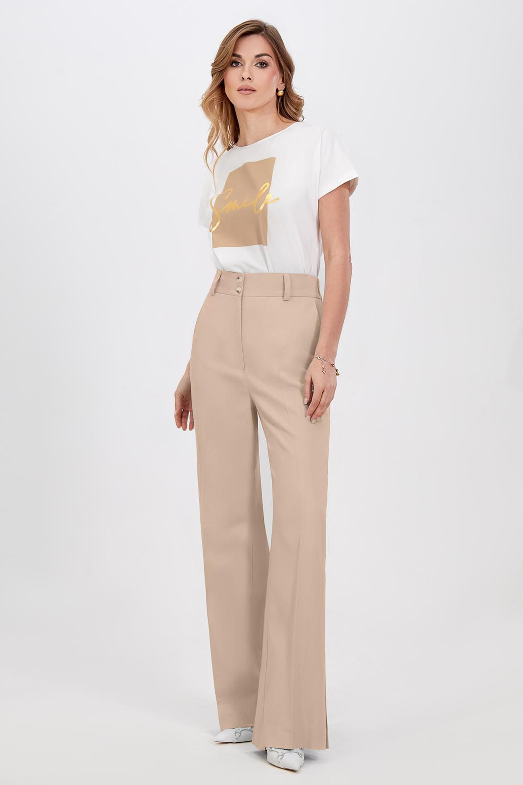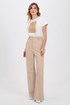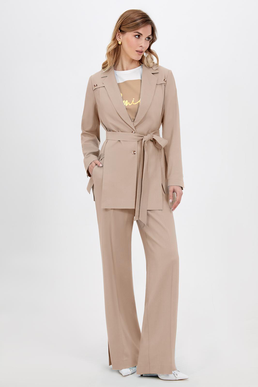 Классический шик! Модные и абсолютно удобные, широкие брюки с косыми боковыми карманами будут сопровождать вас в повседневной жизни. Модная длина создает стильные образы, подходящие как для офиса так и для повседневных мероприятий. Изделие на притачном поясе со шлёвками, собранном на эластичную тесьму по спинке и застёжкой по переду на молнию и петли-пуговицы, выполнили из приятного однотонного материала на основе льна. В пару к брюкам можно подобрать жакет из той же линейки для создания готового комплекта.