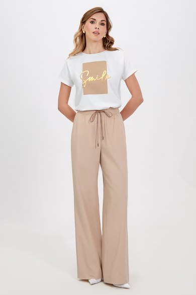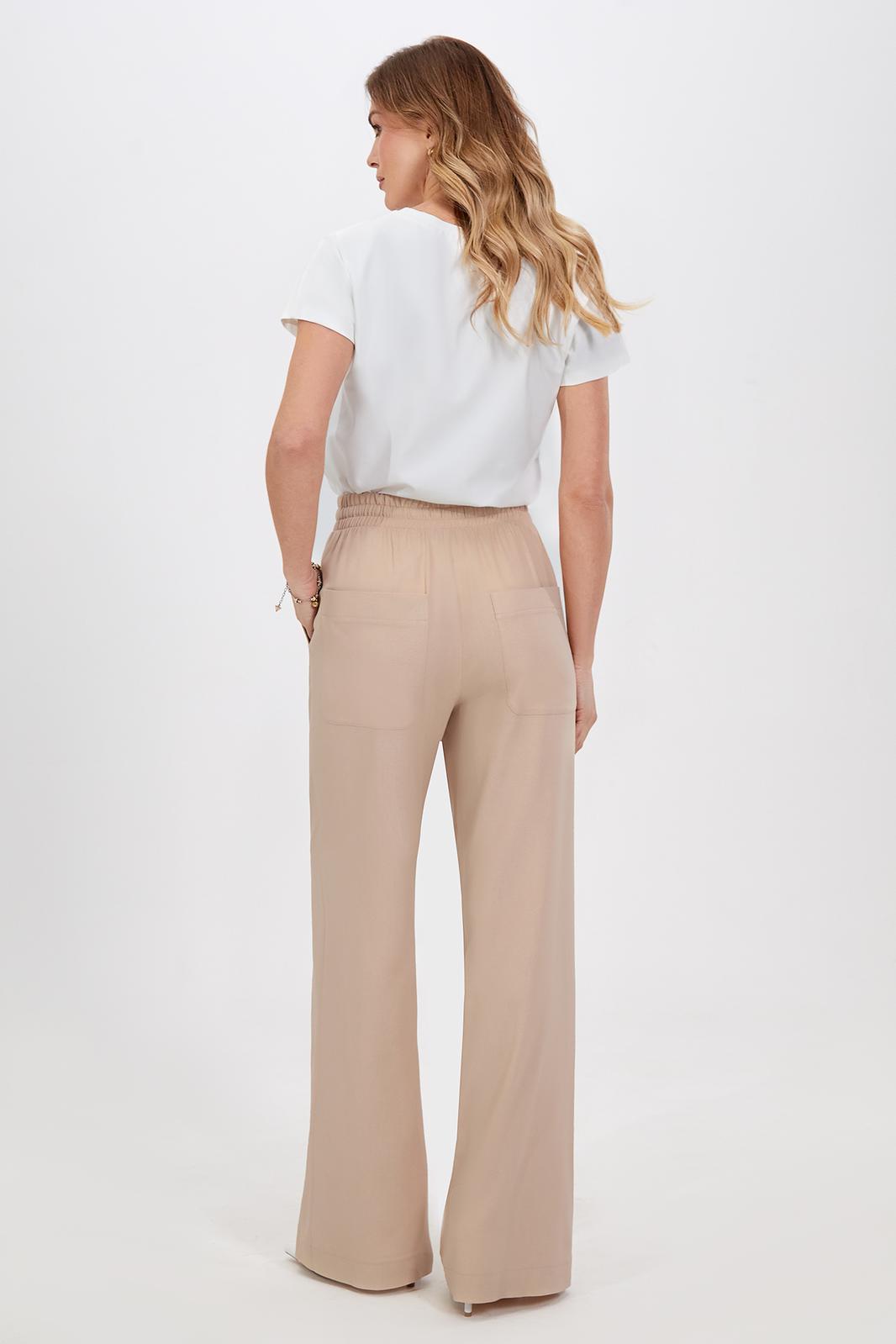 Эта модель из смесовой ткани на основе льна идеально подходит для лета. Широкий крой и удлинённые штанины придают образу непринуждённый вид. Боковые карманы и эластичный пояс со шнуром дополняют комфортный стиль. Брюки можно носить отдельно или дополнить жакетом, вышедшим в той же линейке.