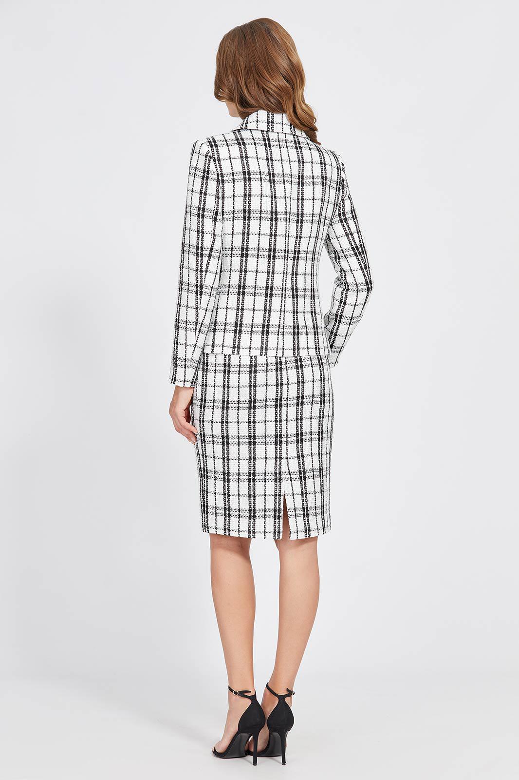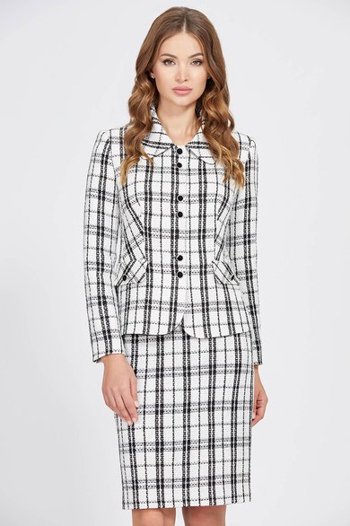 Для пошива данной модели жакета использовали мягкий фактурный твид с интересным клетчатым рисунком. Модель полуприлегающего силуэта дополнили отложным воротником и декоративными клапанами. Праздничное настроение задают контрастные пуговицы, придающие нотку изысканности. Рукава втачные двухшовные. На подкладке. Созданный с тщательным вниманием к деталям, он обещает роскошь и стиль – идеальное сочетание для современной женщины.