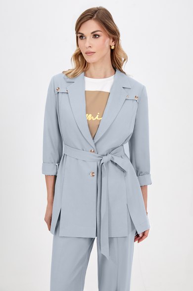 Элегантность встречается с повседневностью! Этот жакет прямого кроя сочетает в себе классические детали с современной интерпретацией, такие как воротник с лацканами, застёжка на двух пуговицах и кокетки, дополненные отделочными пуговицами по переду. Интересное решение рельефов и среднего шва спинки разбивает классический образ и придаёт ему повседневный, спортивный оттенок, а разрезы в движении добавляют дополнительную динамику. Рукава втачные двухшовные, со шлицами с отделочными пуговицами. Частично на подкладке. Жакет можно носить с поясом-завязкой для акцента на талии или оставить свободным для раслабленного,но стильного образа.