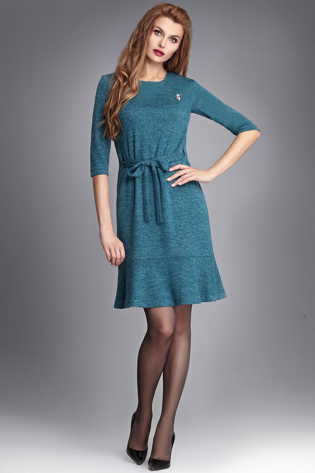 Трикотажное платье приталенного силуэта без подкладки с застежкой на потайную молнию по спинке, и поясом, выполненным из основной ткани.