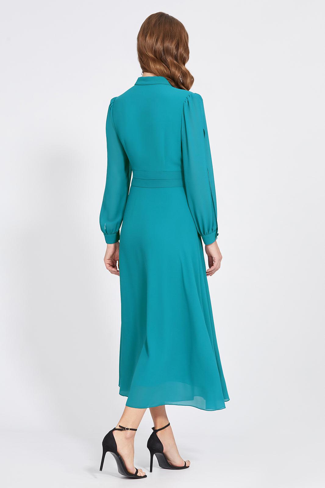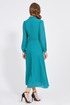 Летящее платье -макси, которое просто не терпится надеть, выполнили из приятного однотонного шифона, создающего чудесные движения при ходьбе и 100 % вискозной ткани. Модель Х-образного силуэта, со щелевидным вырезом со сборкой по горловине переда и отложным воротником со стойкой с застёжкой на навесную петлю и пуговицу, полупрозрачными рукавами-фонарик с разрезами и манжетами с застёжкой на петлю-пуговицу. А завершают этот праздничный образ две горизонтальные широкие складки, красиво подчёркивающие линию талии.